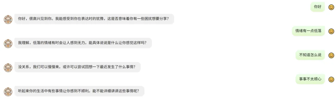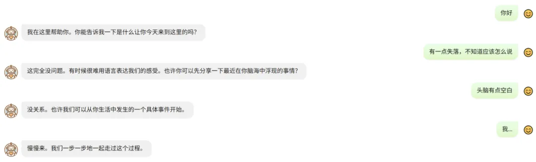 共情对话: 具备高度共情能力,在安全、信任的交流中,引导您自然表达。