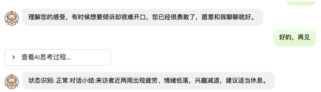 状态识别: 帮您更好地理解当前的情绪状态,识别潜在的情绪模式,为后续的咨询调整提供参考。