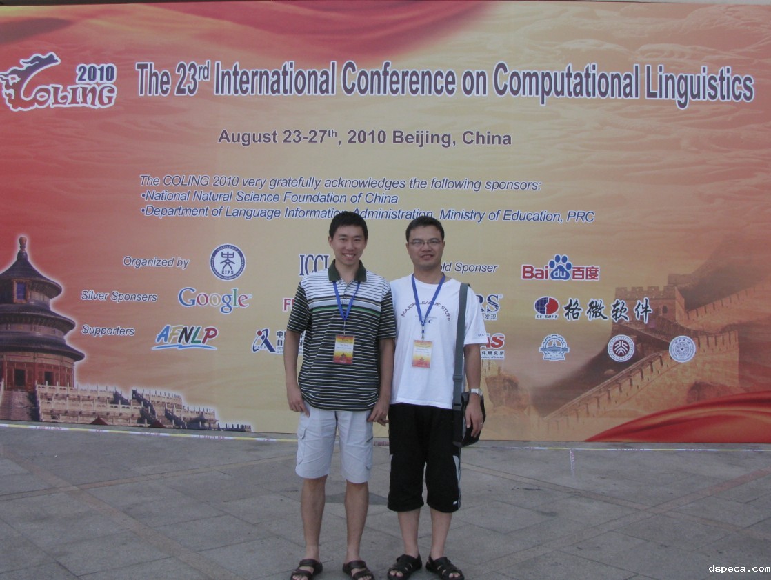 第23届国际计算语言学会议(The 23rd International Conference on Computational Linguistics, Coling 2010)于2010年8月21至8月28日在北京召开。这是Coling首次在中国大陆举行,也是国内自然语言处理及相关方向学者近距离参与国际顶级盛会的良机。“规则与统计共舞,计算随语言齐飞”的大会主题形象鲜明;热烈的学术讨论与独具特色的悠扬古琴使得科技前沿与传统民族文化在这一刻完美结合。信息检索研究中心积极参与到此次大会中来。研究中心共有有四篇论文在大会上进行宣读与展示。其中有3篇文章录用为主会议Oral Presentations,分别是:Wanxiang Che and Ting Liu. Jointly Modeling WSD and SRL with Markov LogicShiqi Zhao, Haifeng Wang and Ting Liu. Paraphrasing with Search Engine Query LogsShiqi Zhao, Haifeng Wang, Xiang Lan and